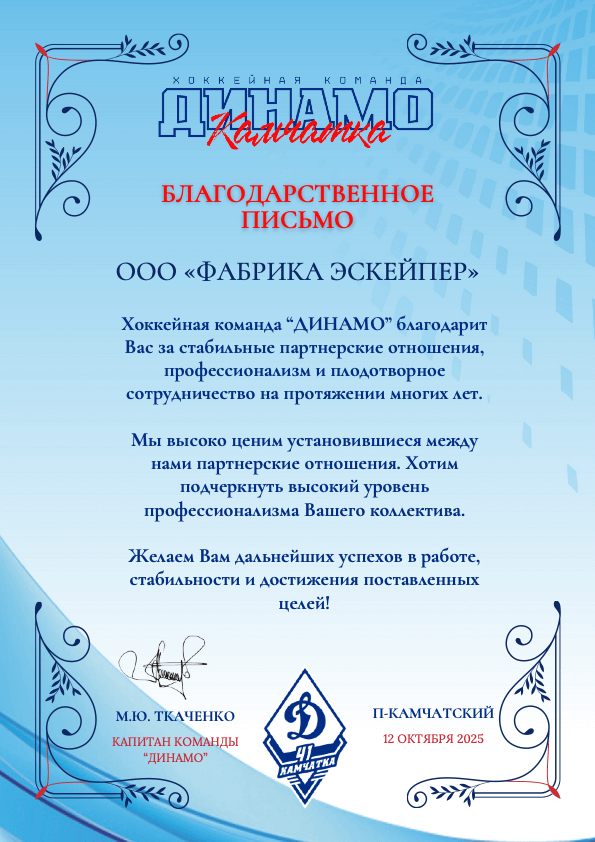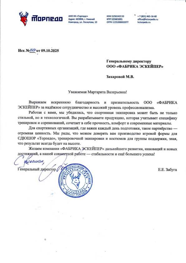 Мы гордимся доверием наших клиентов — спортивных школ, университетов, корпораций и федераций. Ниже — часть официальных благодарственных писем, полученных от партнёров.