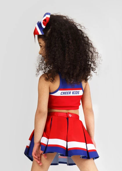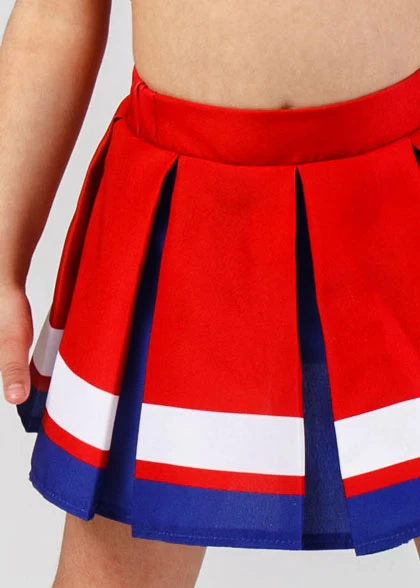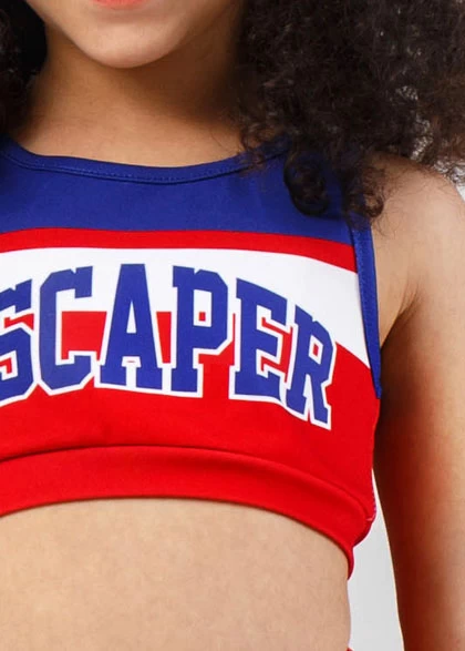 EscaperОписание: Детский комплект для чирлидинга: топ и юбка с шортами. Короткий топ на широких бретелях, под грудью фиксируется эластичной тесьмой. Юбка восьмиклинка из плотной ткани — габардин, застегивается на молнию и пуговицу. Резинка на талии. В комплект входят шортики. Можно дополнить гетрами и бантом. Полная сублимация — любой цвет и дизайн (уже входит в стоимость).
